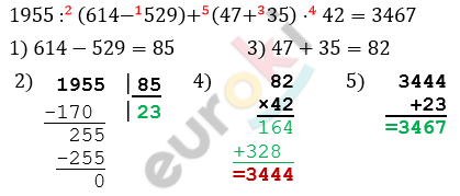 Найдите значение выражения: 1955:(614-529)+(47+35)*42.