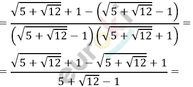 \[\frac{1}{\sqrt{5 + \sqrt{12}} - 1} - \frac{1}{\sqrt{5 + \sqrt{12}} + 1} =\]