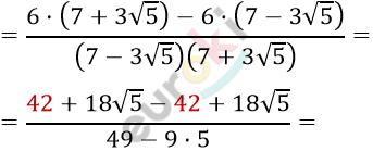 \[\frac{6}{7 - 3\sqrt{5}} - \frac{6}{7 + 3\sqrt{5}} =\]