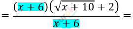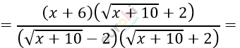 \[= \frac{(x + 6) \cdot \left( \sqrt{x + 10} + 2 \right)}{x + 10 - 4} =\]
