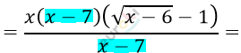 \[= \frac{x(x - 7)\left( \sqrt{x - 6} - 1 \right)}{\left( \sqrt{x - 6} + 1 \right)\left( \sqrt{x - 6} - 1 \right)} =\]