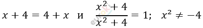Равносильны ли уравнения: x+4=4+x и (x^2 +4)/(x^2 +4)=1?