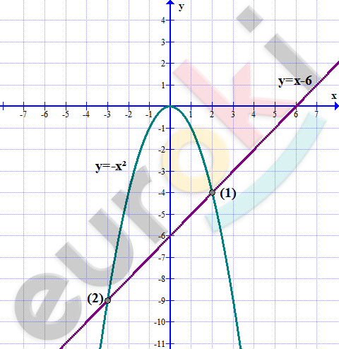 \[\left\{ \begin{matrix} y = - x^{2}\text{\ \ } \\ y = x - 6 \\ \end{matrix} \right.\ \]