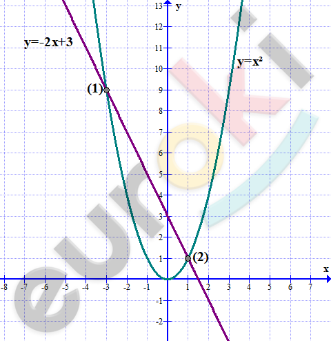 \[\left\{ \begin{matrix} y = x²\ \ \ \ \ \ \ \ \ \ \ \\ y = - 2x + 3 \\ \end{matrix} \right.\ \]