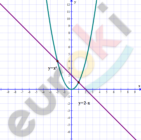\[y = x^{2};\ \ \ y = 2 - x\]