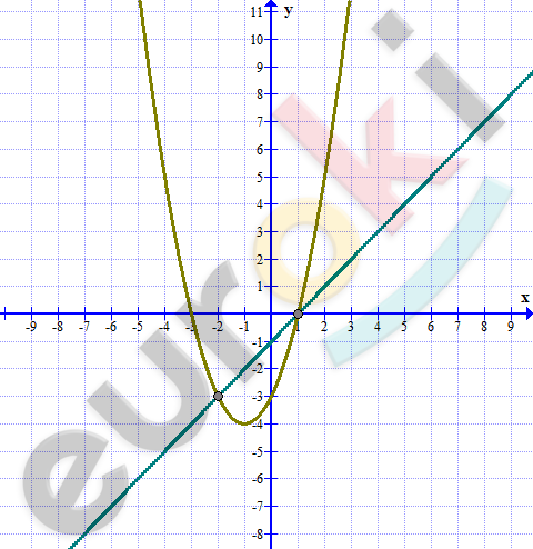 Решите графическим способом систему уравнений: y=x-1; y=x^2+2x-3.