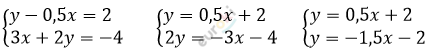 Решите графическим способом систему уравнений: y-0,5x=2; 3x+2y=-4.
