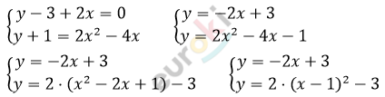 Решите графическим способом систему уравнений: y-3+2x=0; y+1=2x^2-4x.