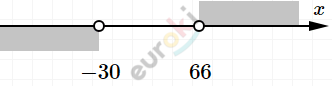 \[Ответ:\ \ x \in ( - \infty;\ - 30) \cup (66; + \infty).\]