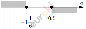 \[Ответ:\ \ \ \ x \in \left( - \infty;\ - 1\frac{1}{6} \right\rbrack\ \ \cup \lbrack 0,5;\ \ \ + \infty).\]