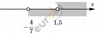 \[\ \left\{ \begin{matrix} 2x - 3 > 0 \\ 7x + 4 > 0 \\ \end{matrix}\text{\ \ \ \ \ \ } \right.\ \left\{ \begin{matrix} 2x > 3\ \ \ \\ 7x > - 4 \\ \end{matrix} \right.\ \text{\ \ \ \ \ }\left\{ \begin{matrix} x > 1,5 \\ x > - \frac{4}{7} \\ \end{matrix} \right.\ \]