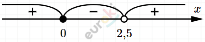 \[\frac{7x}{4 \cdot (x - 2,5)} \leq 0\]