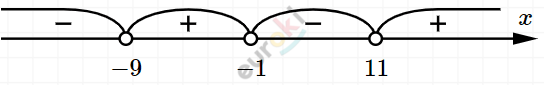 \[- 9 < x < - 1;\ \ x > 11.\]