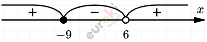 \[x \leq - 9;\ \ \ x \geq 6.\]