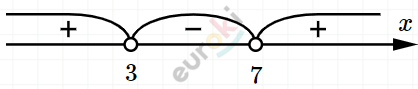 \[(x - 3)(x - 7) > 0\]