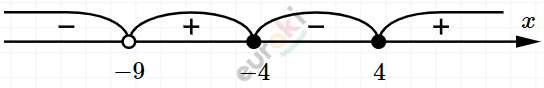 \[\frac{x^{2} - 16}{x + 9} \geq 0\]