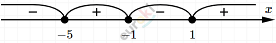 \[(x + 5)(x + 1)(x - 1) \geq 0\]