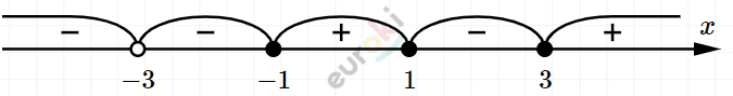 \[\frac{(x + 3)(x + 1)(x - 1)(x - 3)}{4 \cdot (x + 3)} \leq 0\]