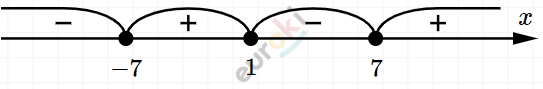 \[x \leq - 7;\ \ 1 \leq x \leq 7.\]