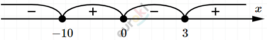 \[x \leq - 10;0 \leq x \leq 3.\]
