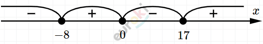 \[x \leq - 18;\ \ 0 \leq x \leq 17.\]