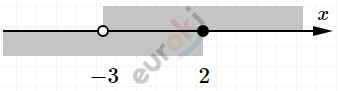 \[\left\{ \begin{matrix} x > - 3 \\ x \leq 2\ \ \ \\ \end{matrix} \right.\ \]