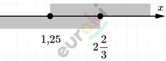 \[Ответ:\ x \in \left\lbrack 1,25;\ \ 2\frac{2}{3} \right\rbrack\text{.\ }\]