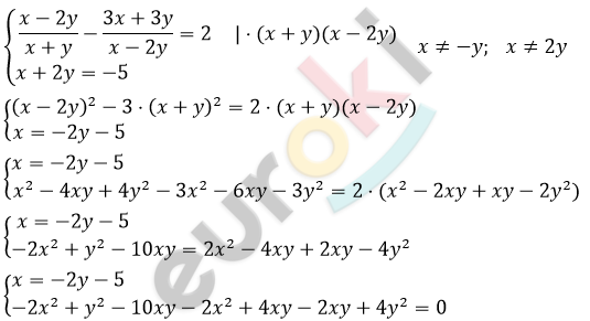 \[\left\{ \begin{matrix} x = - 2y - 5\ \ \ \ \ \ \ \ \ \ \ \ \ \ \ \ \ \ \\ - 4x^{2} - 8xy + 5y^{2} = 0 \\ \end{matrix} \right.\ \]