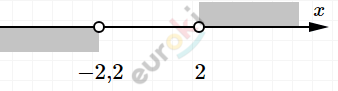 \[Ответ:\ x \in ( - \infty; - 2,2) \cup (2; + \infty).\]