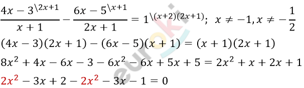 Решите уравнение: (4x-3)/(x+1)-(6x-5)/(2x+1)=1.