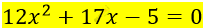 \[x_{2} = \frac{- 17 - \sqrt{529}}{2 \cdot 12} = \frac{- 17 - 23}{24} =\]