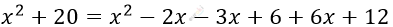 \[\frac{x^{2} + 20}{x^{2} - 4} = \frac{x - 3^{\backslash x\text{-}2}}{x + 2} - \frac{6^{\backslash x + 2}}{2 - x}\]