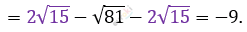 \[= 2\sqrt{5} \cdot \sqrt{3} - \sqrt{27} \cdot \sqrt{3} - 2\sqrt{15} =\]