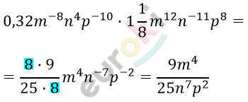 Упростите выражение: 0,32m^-8n^4p^-10*1 1/8*m^12n^-11p^8.