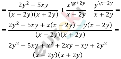 \[= \frac{x^{2} - 4xy + 4y^{2}}{(x - 2y)(x + 2y)} =\]