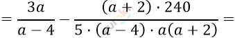 \[\frac{3a}{a - 4} - \frac{a + 2}{5a - 20} - \frac{240}{a^{2} + 2a} =\]