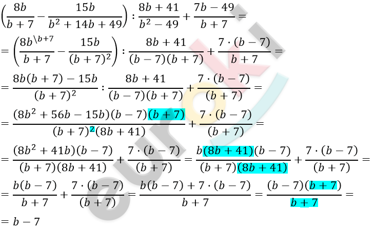 Упростите выражение: (8b/(b+7)-15b/(b^2+14b+49))∶(8b+41)/(b^2-49)+(7b-49)/(b+7).