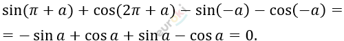 Упростите выражение: sin(π+a)+cos(2π+a)-sin(-a)-cos(-a).