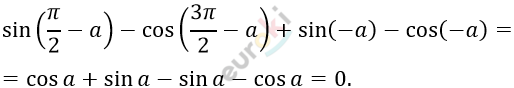 Упростите выражение: sin(π/2-a)-cos(3π/2-a)+sin(-a)-cos(-a).