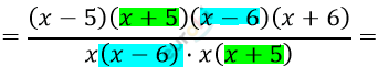 \[\frac{x^{2} - 25}{x^{2} - 6x} \cdot \frac{x^{2} - 36}{x^{2} + 5x} =\]