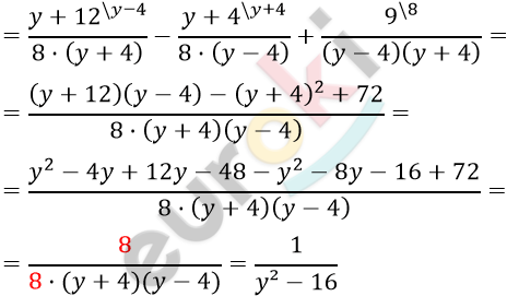 Упростите выражение: (y+12)/(8y+32)-(y+4)/(8y-32)+9/(y^2-16).