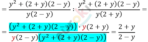 \[= \frac{\frac{y^{2} + (2 + y)(2 - y)}{y(2 - y)}}{\frac{y^{2} + (2 + y)(2 - y)}{y(2 + y)}} =\]