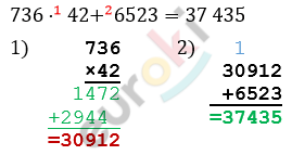 Вычислите: 736*42+6523.