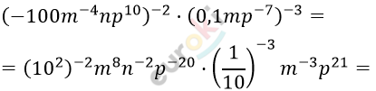 Выполните действия и приведите полученное выражение к виду, не содержащему степени с отрицательным показателем: (-100m^-4np^10)^-2*(0,1mp^-7)^-3.