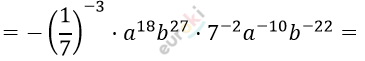 Выполните действия и приведите полученное выражение к виду, не содержащему степени с отрицательным показателем: (-1/7*a^-6b^-9)^-3*(-7a^5b^11)^-2.